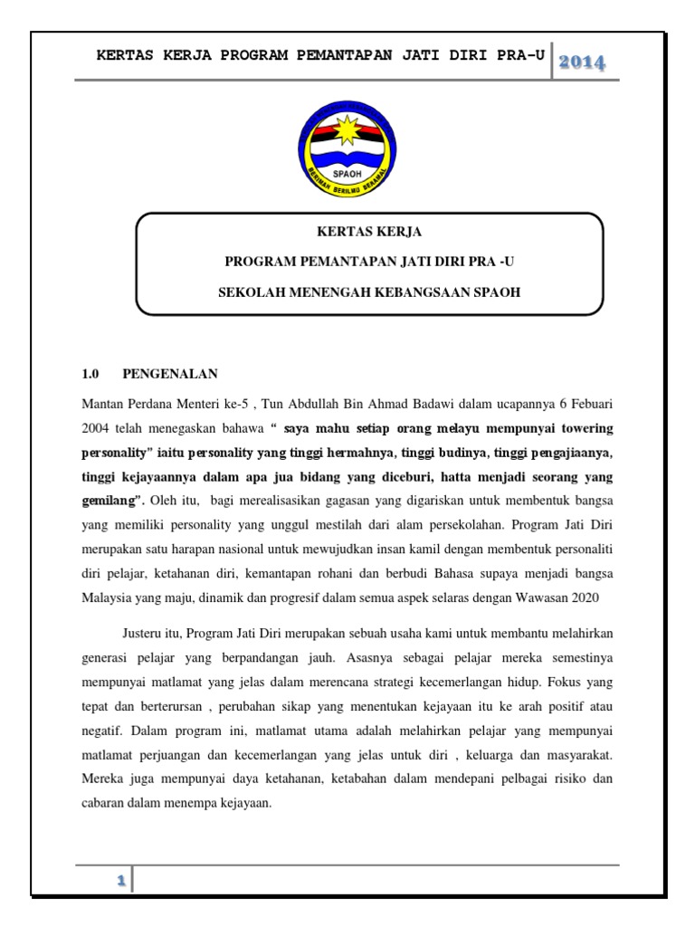 Kertas Kerja Program Pemantapan Jati Diri Pdf